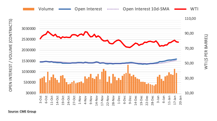 周三WTI原油价格下跌之际未平仓合约进一步增加,依然支持油价在短期内进一步下跌。下一个重要支撑位于2022年低点72.50美元(1月5日)。