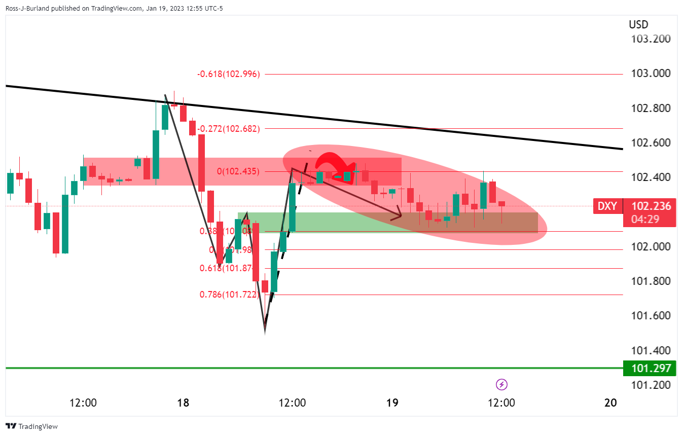 美元指数随后未自低位反弹,技术形态显示美元下跌目标,如下所示: