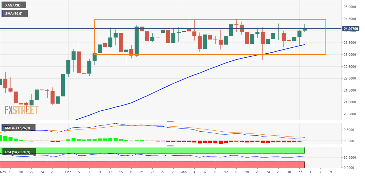 白银价格分析:白银/美元坚守24.00美元上方的涨幅,关注1月份触及的多月高点