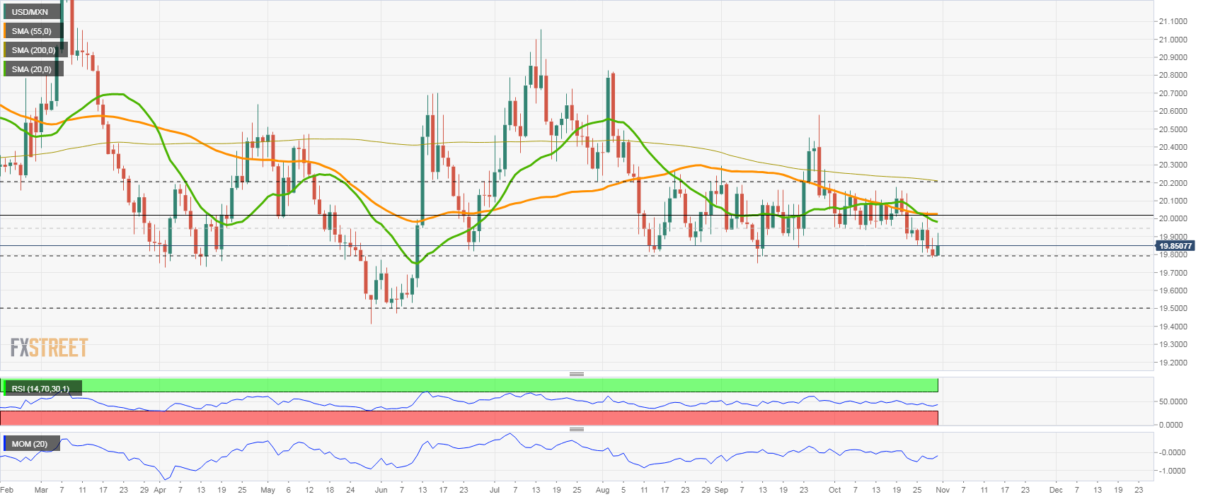 美元兑墨西哥比索价格分析:墨西哥比索继续测试19.80关口