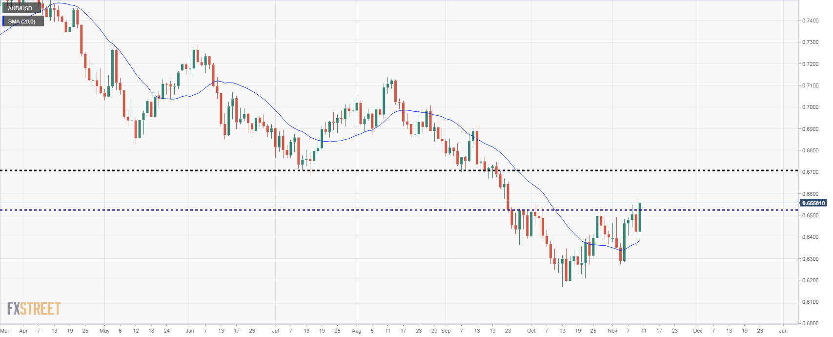 澳元兑美元看向录得9月22日以来的最高日收盘价。