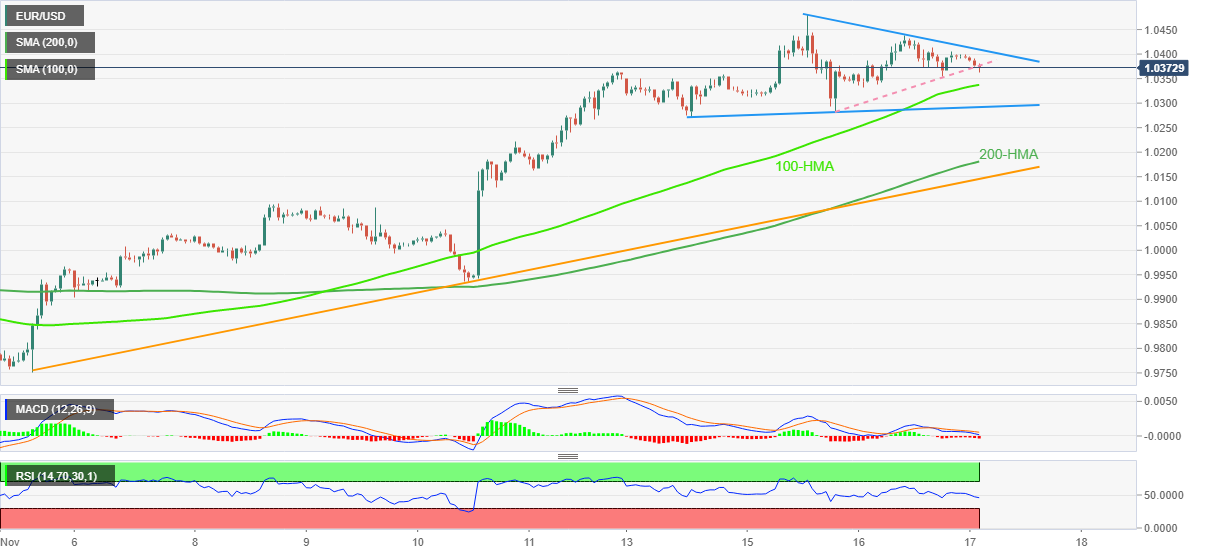 欧元兑美元价格分析:下跌接近100小时均缐,处在周缐三角形形态内
