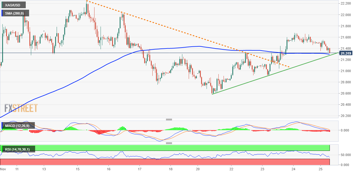 银价分析:白银/美元徘徊于上升趋势缐/200小时SMA汇合支撑位附近