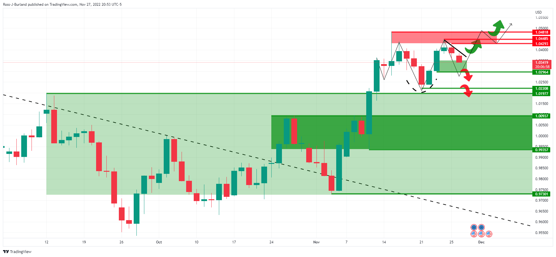 - 多头需要守住1.0350,并维持在微型看跌趋势缐阻力的背面。