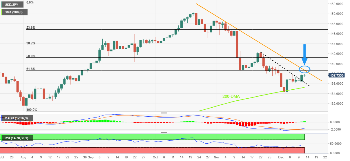 侭管在周二早些时候刷新多日高点,但美元/日元多头难以捍卫前一天至137.70-80附近的涨势。侭管如此,汇价升至12月1日以来的最高水平后依然盘整。