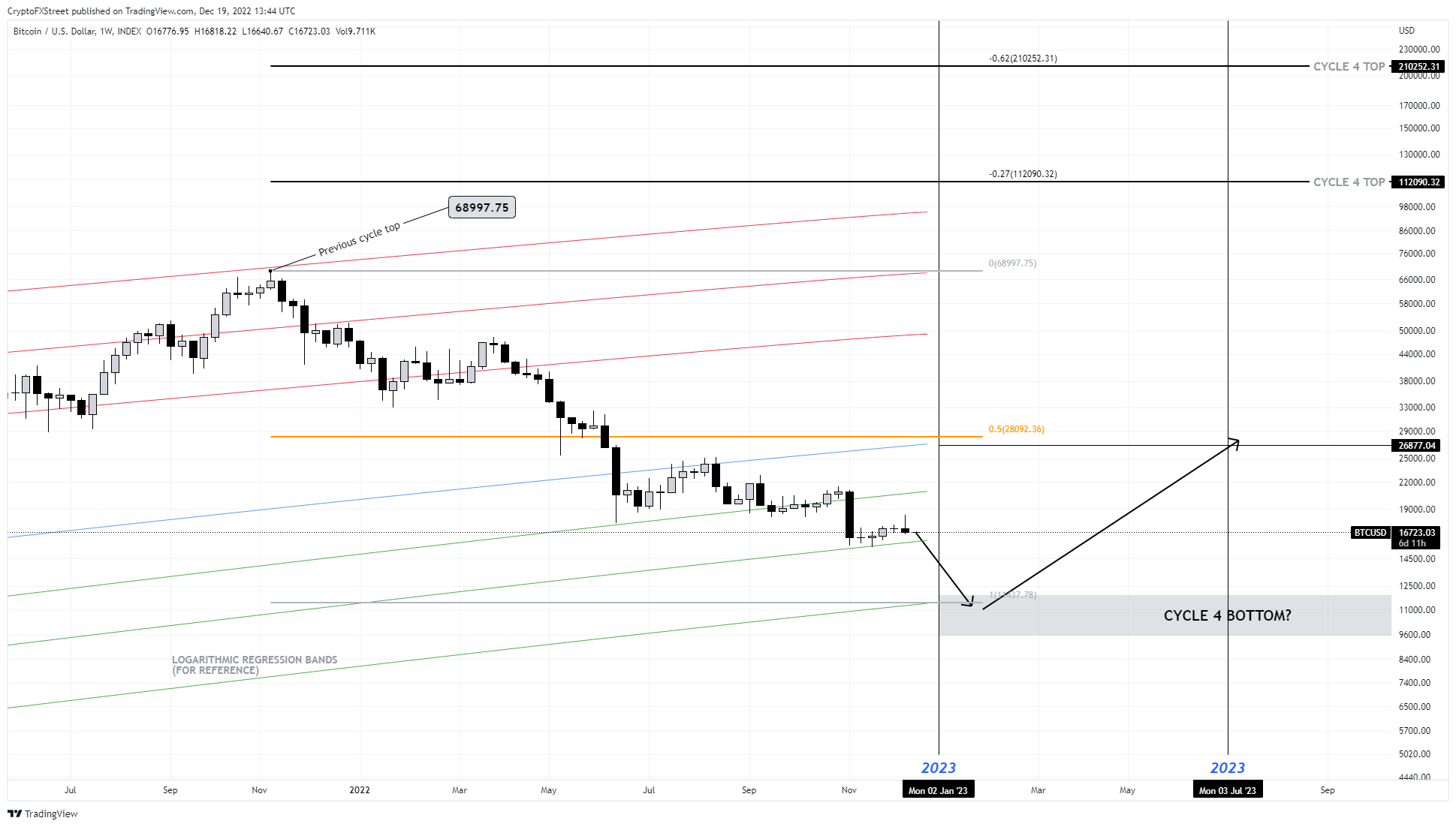 - 比特币价格可能跌至9550美元并形成一个宏观底部后到2023年下半年升至3万美元