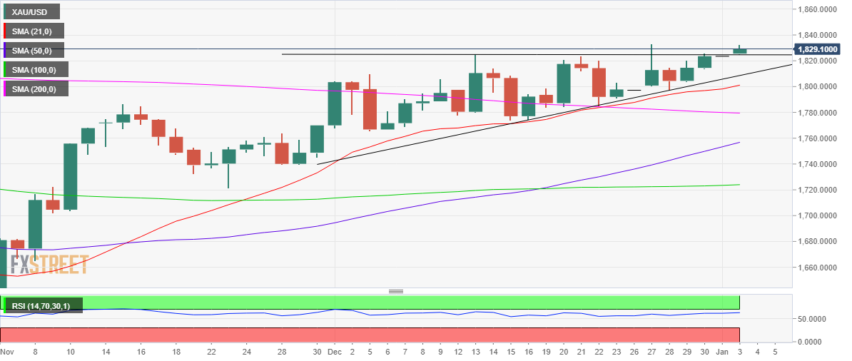 - 金价等待升破1825美元以印证一个上升三角形