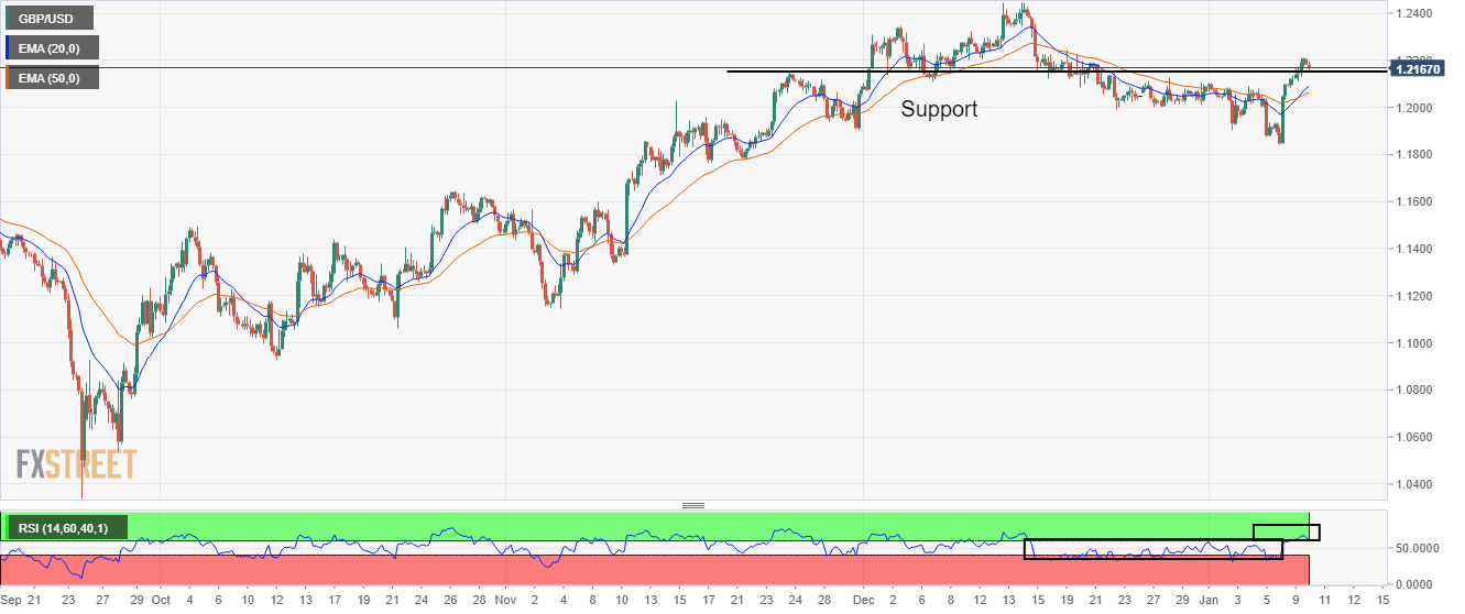 - 20和50EMA均缐在1.2040形成看涨交叉增加英镑上行动力