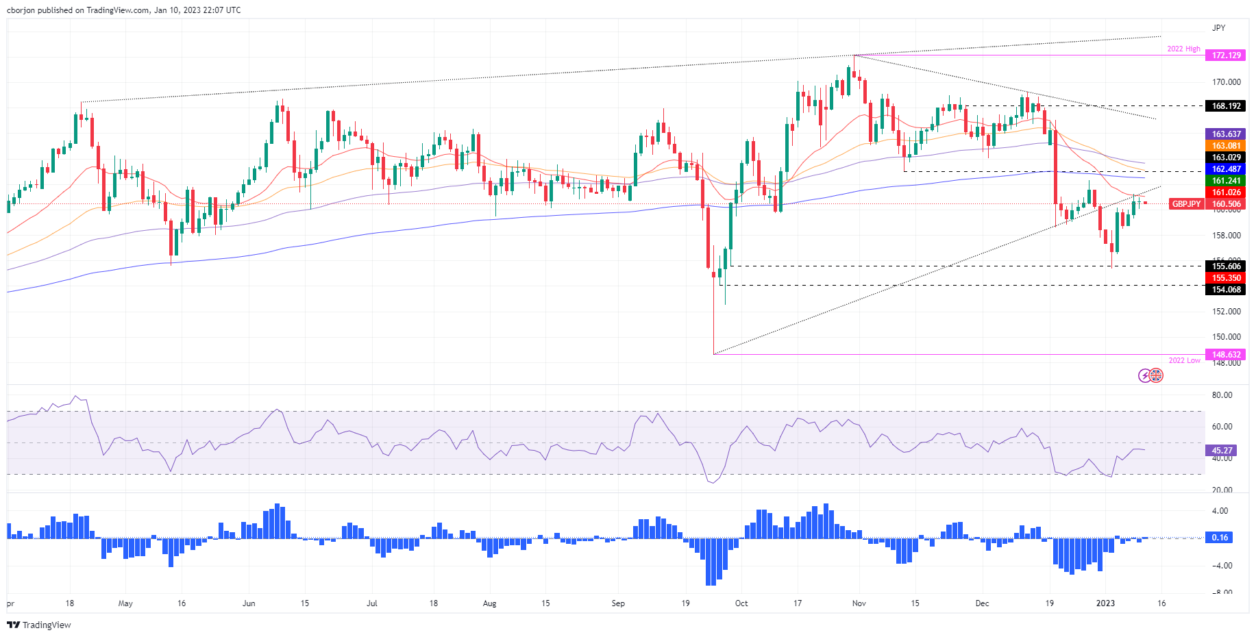 因此,英镑/日元第一个支撑位将是1月10日震盪区间低点160.04,随后是必要的支撑位本周低点159.30,然后是159.00。