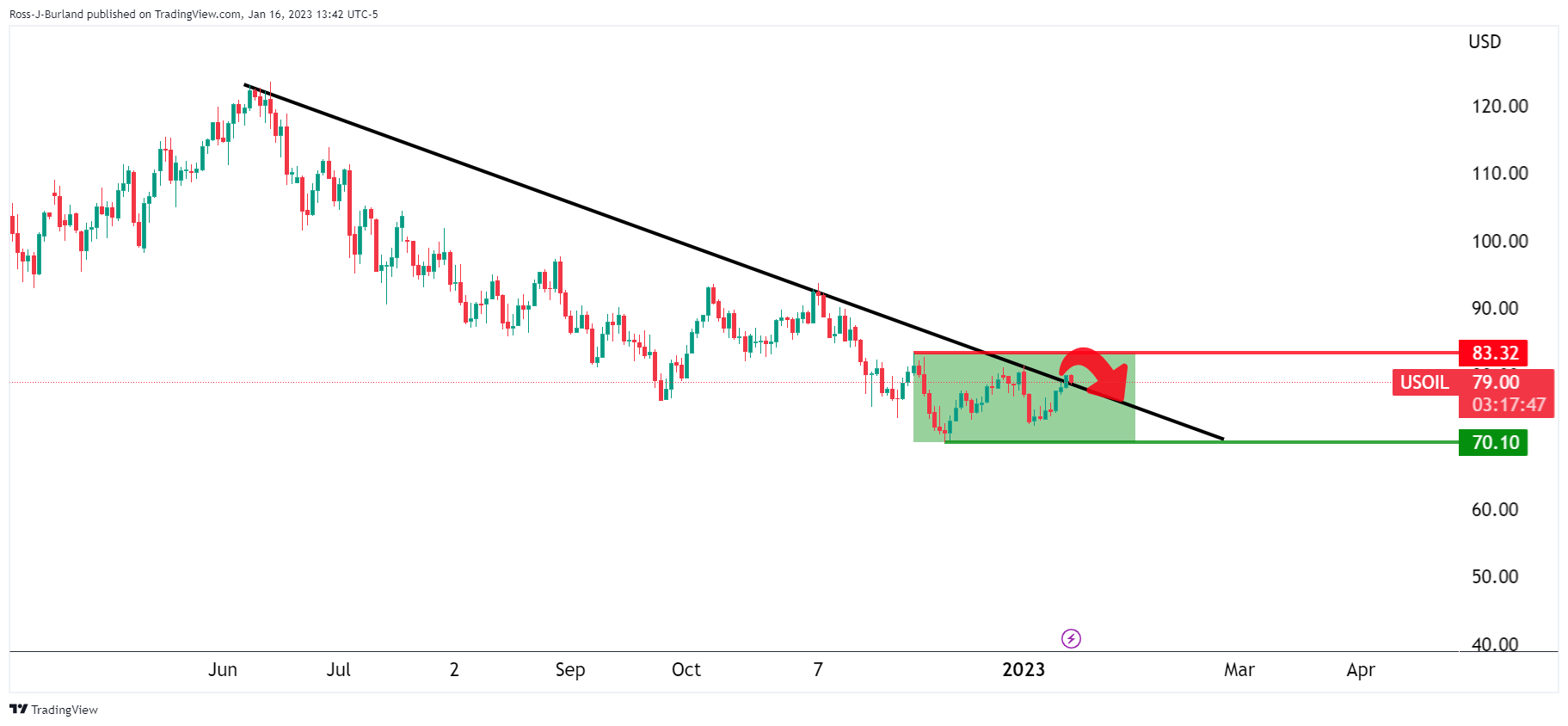 WTI油价价格分析:多头测试日缐趋势阻力,空头正蛰伏